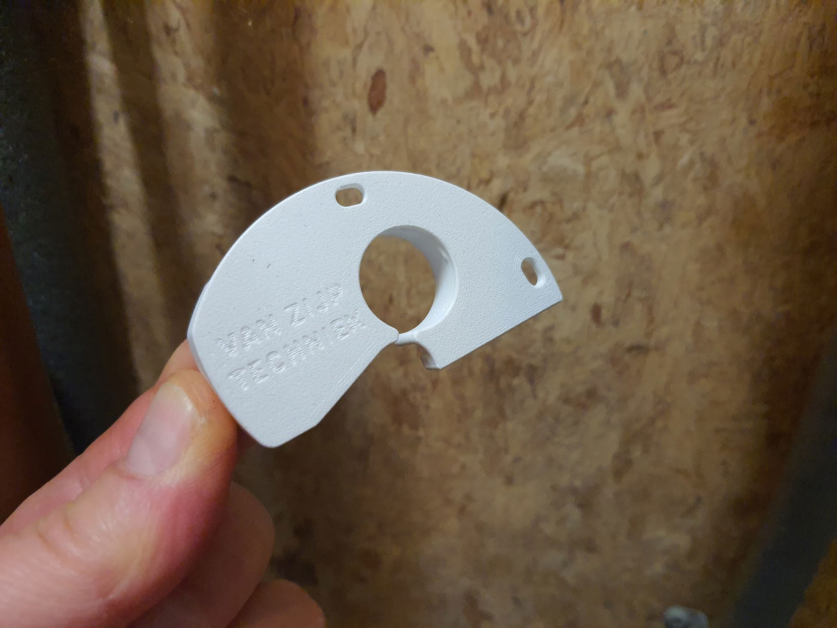 Het plaatje kan je vastzetten met 2 schroefjes. De schroefjes worden niet door ons geleverd maar die zitten al bij de Homewizard watermeter.