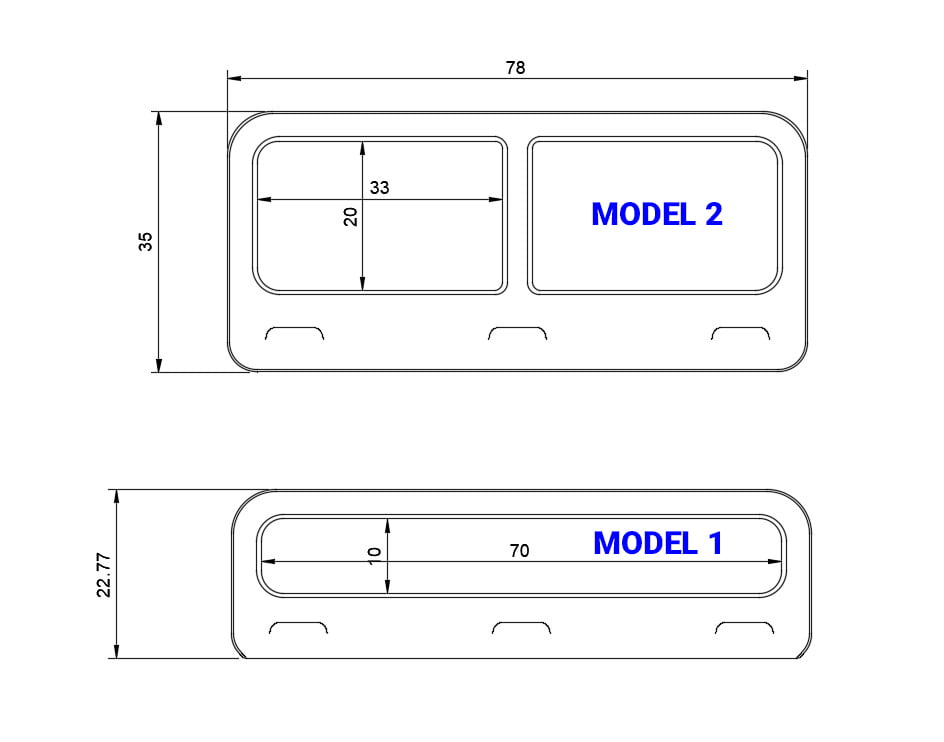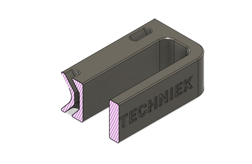 Dit model tasafhouder combineert de eigenschappen van model 1 en 2. Model 3 loopt taps toe en de tyraps zijn nog makkelijker te plaatsen en zal veel minder makkelijk verschuiven als model 1 of 2 door het gebruik van het plakfoam. Model 3 is niet gemaakt van het harde TPU zoals model 1 en 2 maar van het iets hardere Petg.