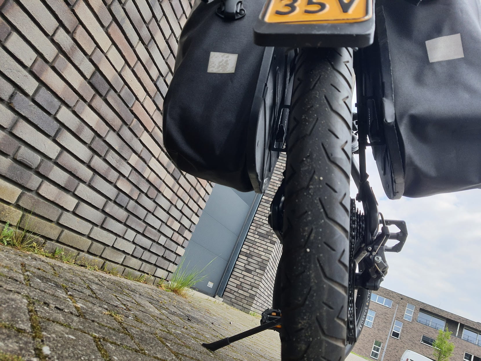 Nu komt eindelijk de tas niet meer tegen het frame aan.